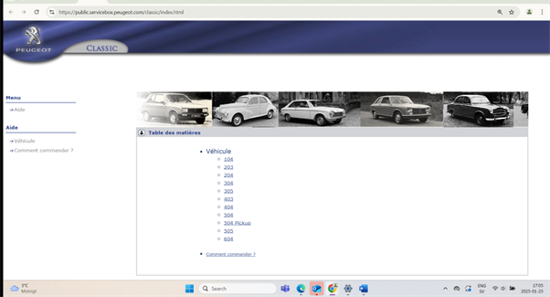 Klicka nedan på knappen “Till Peugeot Service Box Classic” för att hamna på Peugeots hemsida för ovannämnde reservdelskataloger och klicka helt enkelt på modellen